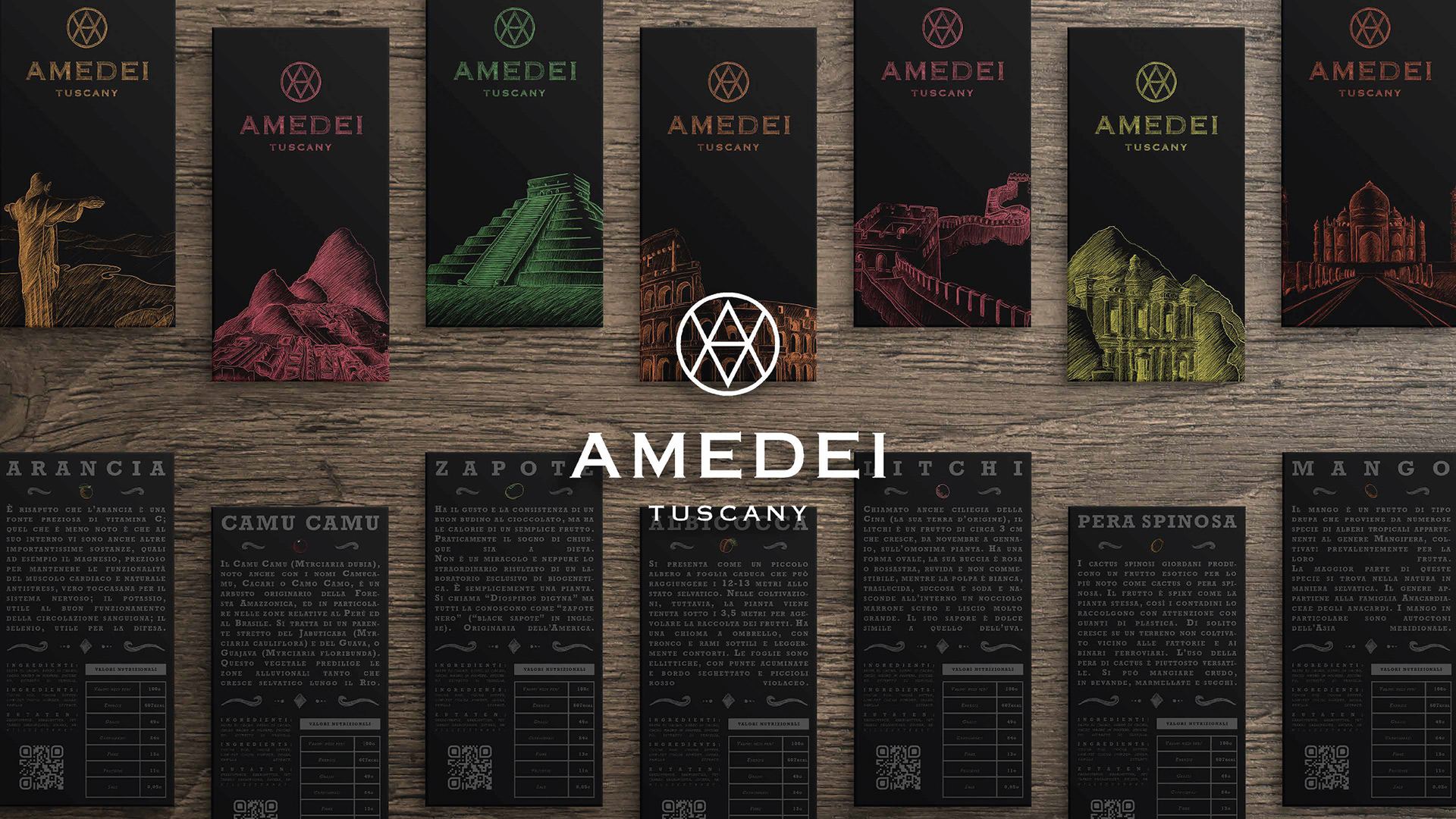 Amedei, an artisanal chocolate company from Tuscany founded in 1990, combines tradition and innovation, earning international acclaim and awards for excellence, including multiple Golden Beans from the Academy of Chocolate.